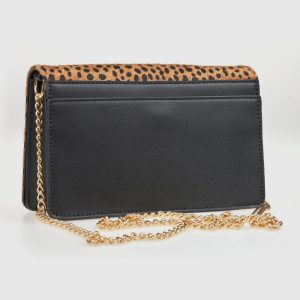39,90€Original price was: 39,90€.27,90€Η τρέχουσα τιμή είναι: 27,90€. - • Υλικό: Συνδυασμός συνθετικού δέρματος και υφής animal print • Διαστάσεις: 26 x 15 x 6 cm • Λουράκι: Χρυσή μεταλλική αλυσίδα με επένδυση ώμου • Εσωτερικό: Φόδρα με τσέπη φερμουάρ • Κλείσιμο: Με φερμουάρ • Προστασία: Συνοδεύεται από υφασμάτινη προστατευτική θήκη με το λογότυπο της Verde