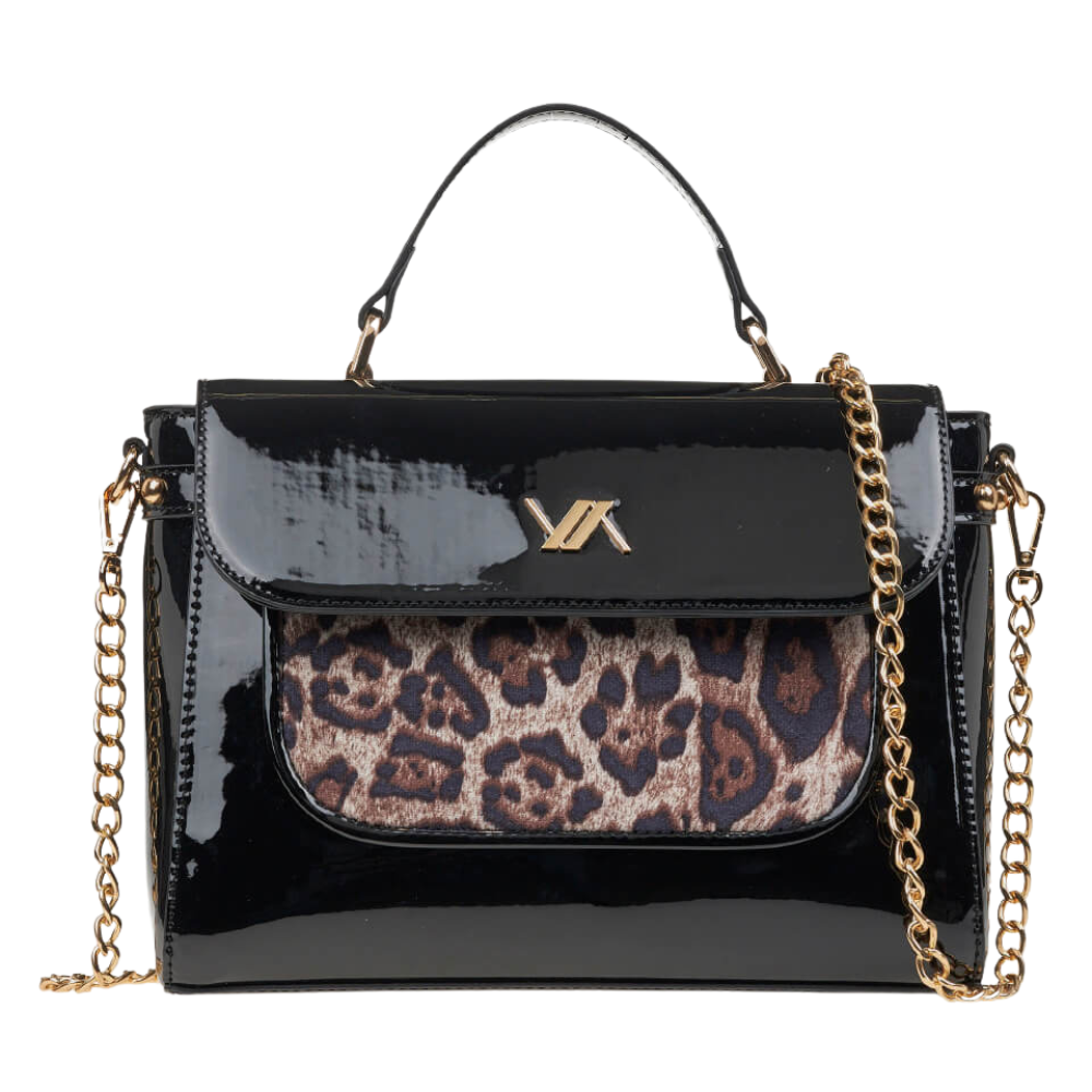 Verde Γυναικεία Τσάντα Χειρός 16-8138 Animal Print Μαύρο