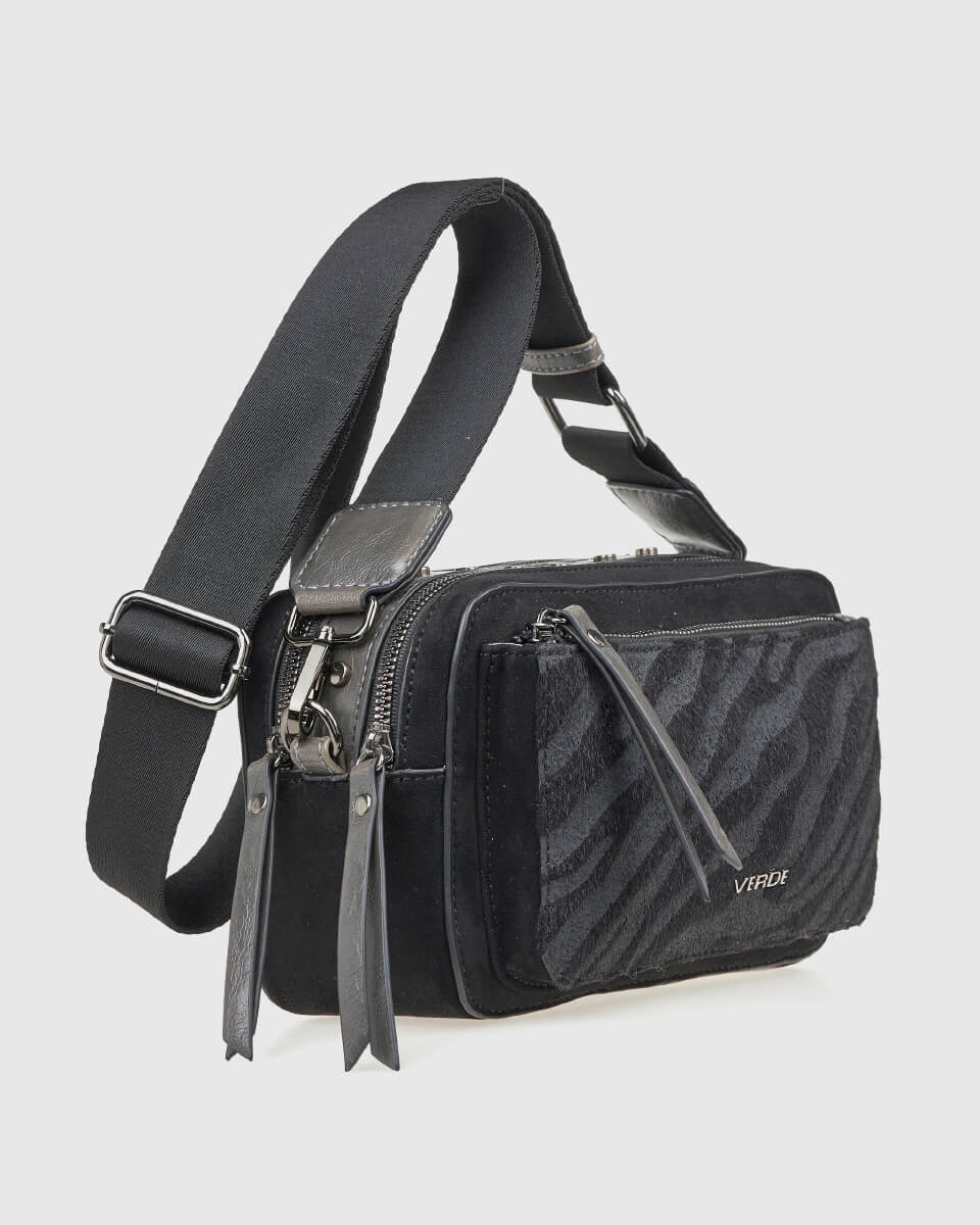 Verde Γυναικεία Τσάντα Χιαστί 16-8057 Μαύρο
