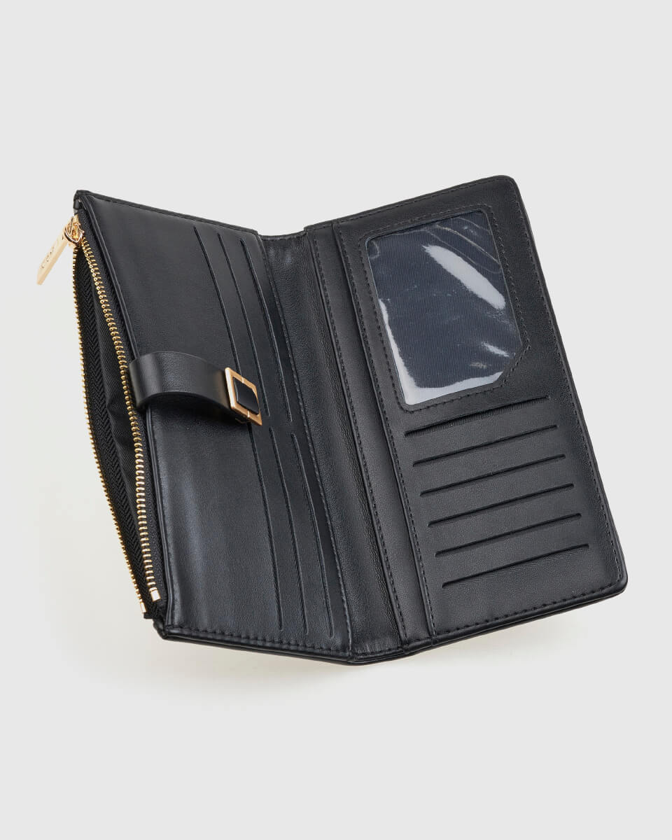• Θήκες: Πολλαπλές θήκες για κάρτες, χαρτονομίσματα, κέρματα και διαφανής θήκη για έγγραφα