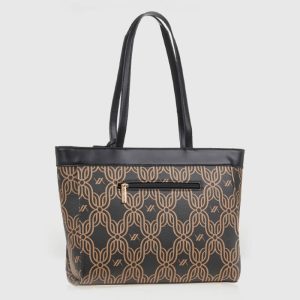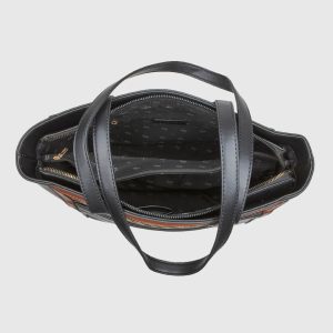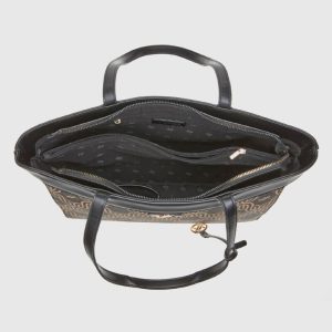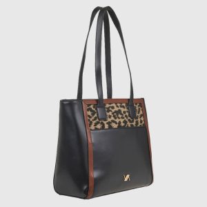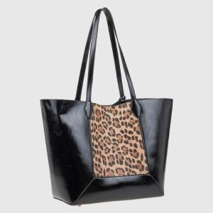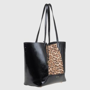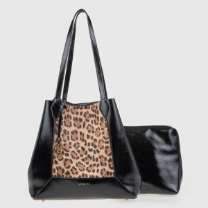 57,90€Original price was: 57,90€.40,50€Η τρέχουσα τιμή είναι: 40,50€. - • Υλικό: Συνθετικό δέρμα με γυαλιστερή υφή και λεπτομέρεια animal print • Διαστάσεις: 46 x 31 x 14 cm • Λουράκια: Διπλά, μακριά λουράκια ώμου • Εσωτερικό: Περιλαμβάνει αποσπώμενη εσωτερική θήκη με φερμουάρ • Κλείσιμο: Με μαγνητικό κούμπωμα • Βάση: Με μεταλλικά ποδαράκια για σταθερότητα • Λογότυπο: Χρυσό Verde μπροστά και διακοσμητικό κρεμαστό • Χρώμα: Μαύρο με λεοπάρ print